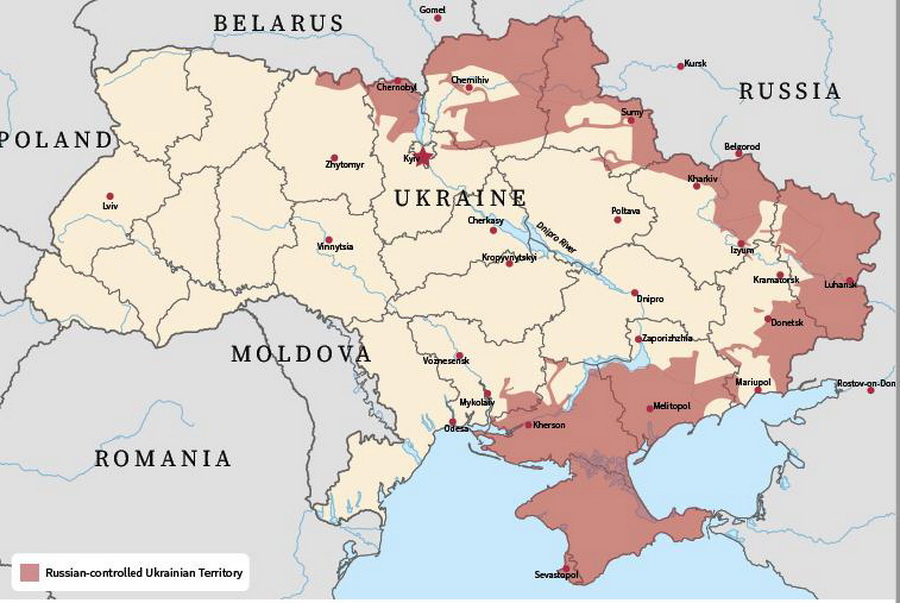 На Донбассе российские операции по связыванию сил ВСУ оказались достаточно успешными. Хотя там ВС РФ продвинулись лишь незначительно, передислокация украинских войск с этого театра военных действий оказалась невозможной. На юге наступление из Крыма проходило в полном соответствии с планом вторжения: Мелитополь и Херсон оказались захваченными почти без боев, и вскоре было завершено окружение Мариуполя.