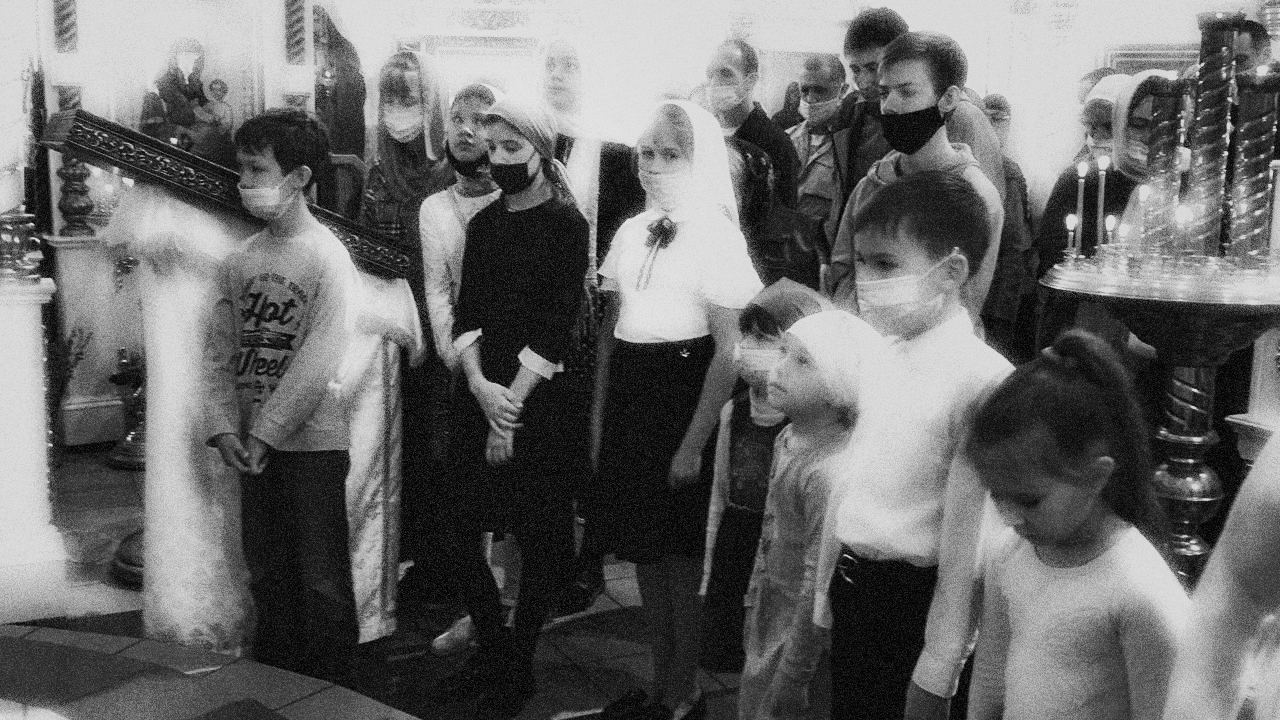 Аня (в черном) в храме во время воскресной службыФото: из личного архива героев «Сейчас в клубе они снимают кино про храм, рассказывают прихожанам об иконах. Я ее не заставляю, она сама с утра добровольно бежит туда», — говорит Лада.
