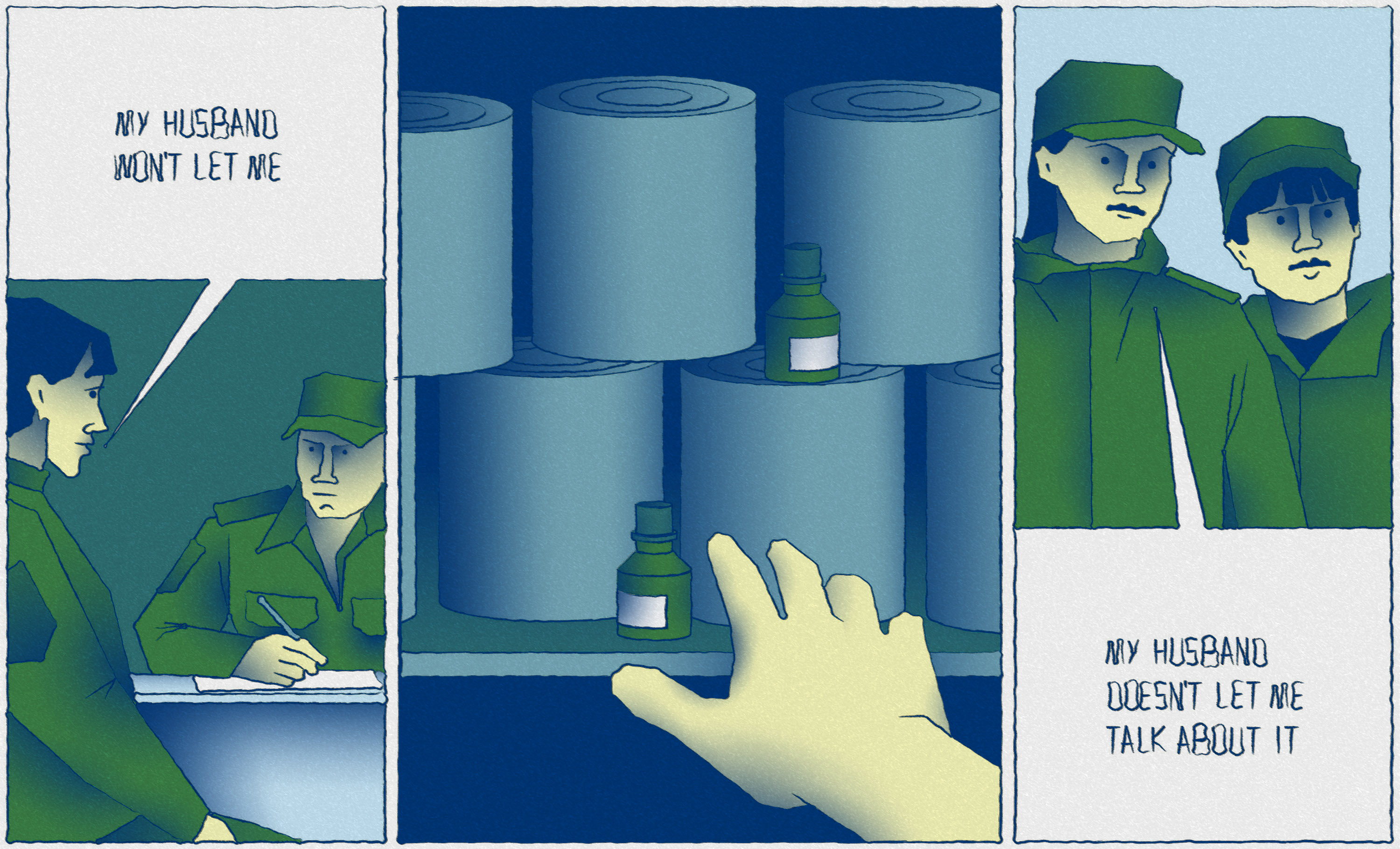 We have propaganda in all our military units, of course. These are classes for the staff explaining the reasons and goals of the military operation, and so on. But I keep quiet about my position and don't talk to anyone. All my colleagues are used to the fact that I am very much dependant on my husband—that's the image I've created for myself. And when they ask me, “How do you feel about it?”, I say, “My husband doesn't let me talk to you about it.” Everybody kind of looks at me like I'm a fool, but it works. Yeah, this absurd is everywhere. I stopped understanding anything. I decided that if I somehow tried to explain everything to myself logically, I would go crazy.