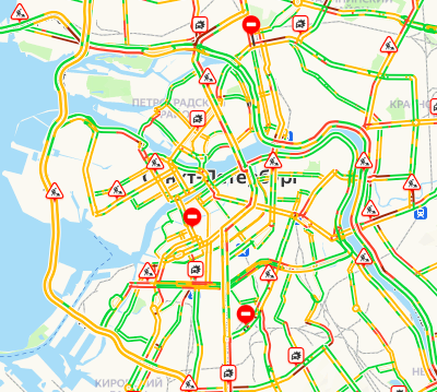 Как справляются с пробками. К 10:15 уровень пробок опустился до 6 баллов, однако некоторые дороги Приморского, Красногвардейского, Калининского и Кировского районов всё еще остаются заполненными.