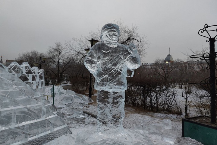09:57 Одну из ледяных фигур солдат, которые установили власти на центральной площади в Чите, повредили. У нее сломали автомат, передает ZabNews.