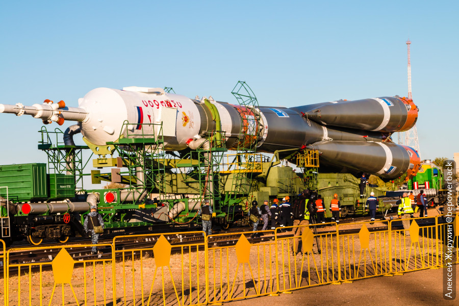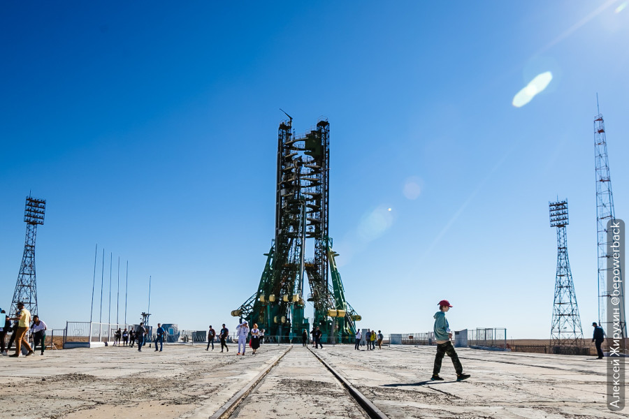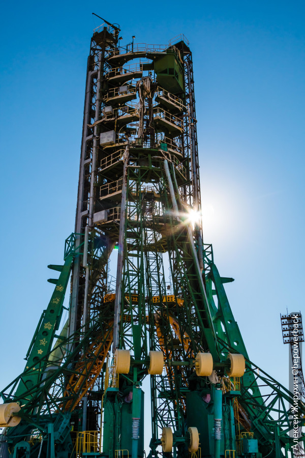 На Байконуре ракету-носитель "Союз" обслуживают перед стартом с помощью ферм обслуживания, которые расходятся в стороны до старта. То есть весь персонал находится под открытым небом: летом на жаре, а зимой на пронизывающем холодном ветре. Таких одинаковых стартовых комплекса на Байконуре два, они дублируют друг друга в случае, если один из них повредится в случае аварии.