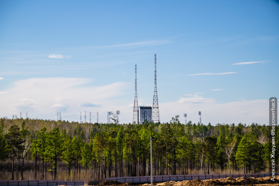 На Восточном никакой конкуренции нет, стартовые площадки располагаются рядом друг с другом. Это фото на стартовый комплекс для Союза со стороны Ангары.