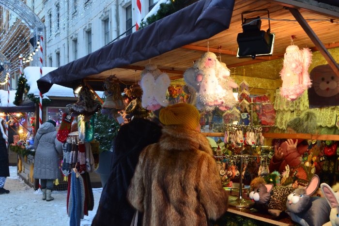 В этом году рождественская ярмарка проходит на трех площадях. Основная часть расстилается вокруг Манежной. Так, на Малой Садовой улице установили замок с героями сказки «Щелкунчик» Францем и Мари. Далее расположились стилизованные под зимние домики торговые павильоны, где продают новогодние елочные украшения, мягкие игрушки, керамику, мерч хоккейного клуба СКА, леденцы, «рыбу Ямала», мед, сыры и даже соленья.