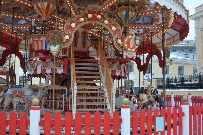 На Кленовой улице расположилась двухэтажная карусель, которая движется под музыку балета Чайковского, и бесплатный каток.