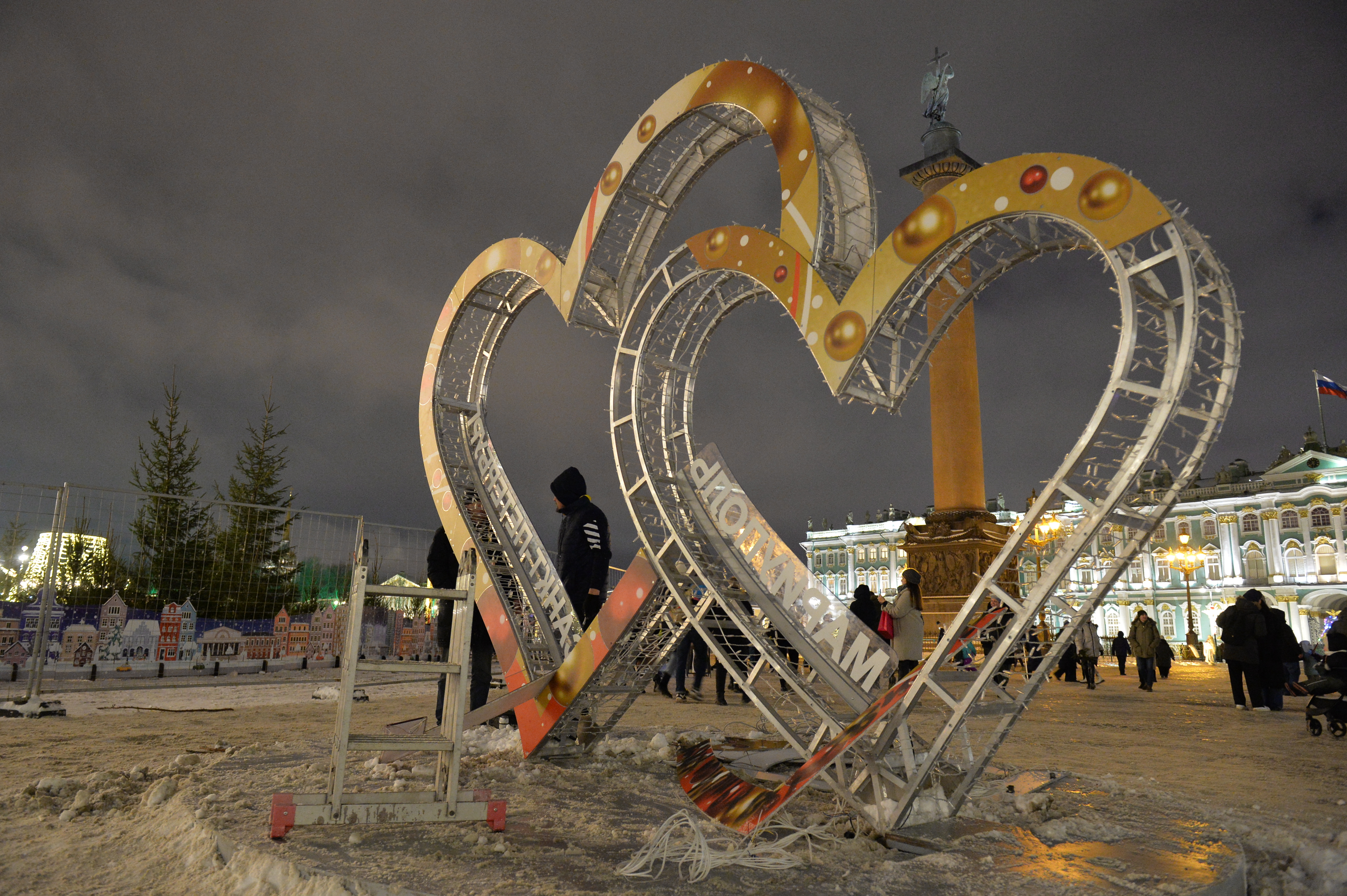 Инсталляция "Петербург-Мариуполь" появилась на Дворцовой площади 12 декабря в честь побратимства городов, о котором заявляют российские власти.