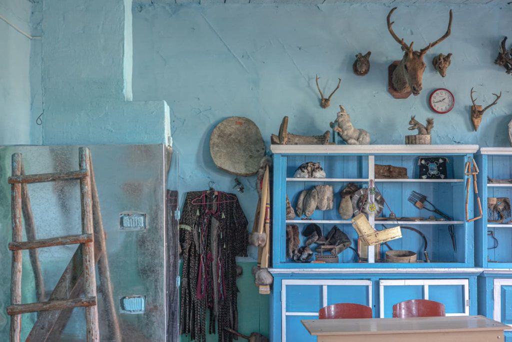 Татьяна Станиловская, показывая школу, первым делом ведёт в кабинет истории, он же музей. Сзади и по боковым сторонам кабинета висят и стоят экспонаты: головы оленей с рогами, амулеты из бисера, скребки для выделки шкур, крюки для подвешивания вьюков. У школьной доски — портрет Владимира Путина, справа от него стоят охотничьи лыжи, обитые мехом. Под портретом Путина — аппликация в виде берёзы. На берёзе — бумажные листочки. На одном из них детским почерком написано: «В России я уважаю Президента России», — на другом: «Я горжусь тем, что Россия — гордая, и смелая, и справедливая».