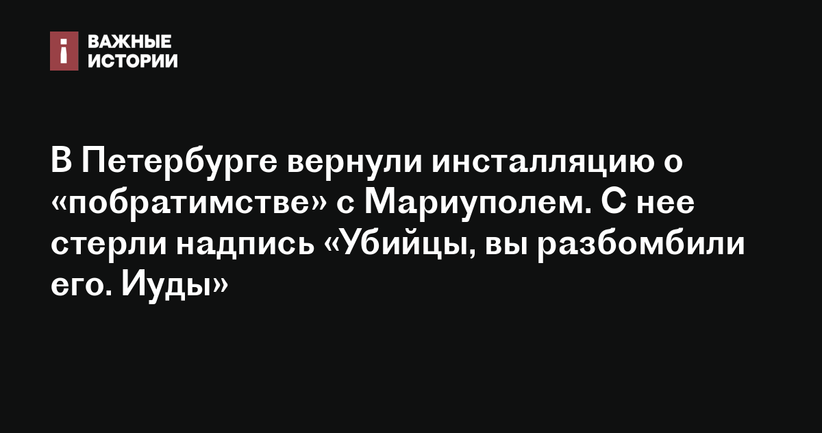 В Петербурге вернули инсталляцию о «побратимстве» с Мариуполем. С нее стерли надпись «Убийцы, вы разбомбили его. Иуды»