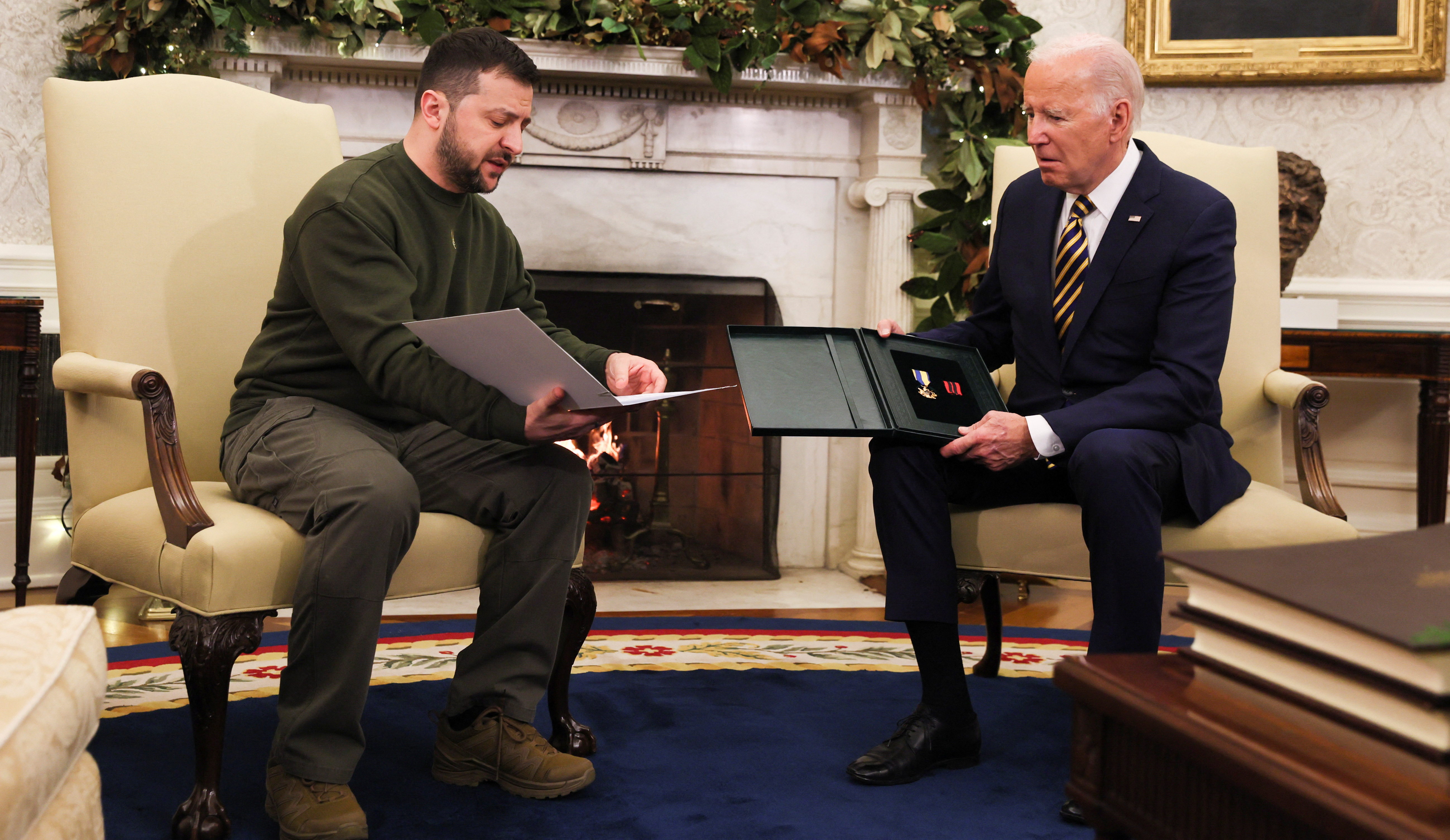 Зеленский также передал Байдену медаль одного из украинских военных, с которыми он накануне встречался в Бахмуте: именно в этом городе в Донецкой области сейчас идут самые опасные бои с Россией. По словам Зеленского, когда он хотел вручить награду одному из военных (президент не назвал его фамилии, но назвал имя – Павло), тот попросил не вручать награду ему, а отдать ее Байдену – в знак благодарности за помощь, которую США оказали Украине в войне с Россией. Зеленский пообещал военному это сделать, и вручил медаль Байдену во время встречи.