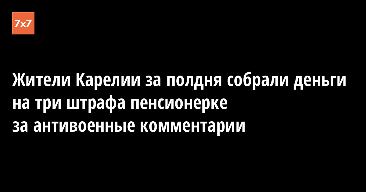 Жители Карелии собрали 50 тыс. руб. на три штрафа пенсионерке за «дискредитацию армии». Им на это потребовалось несколько часов. Женщину привлекли к ответственности за антивоенные комментарии в соцсетях, сообщил Telegram-канал From Karelia with freedom 22 декабря.