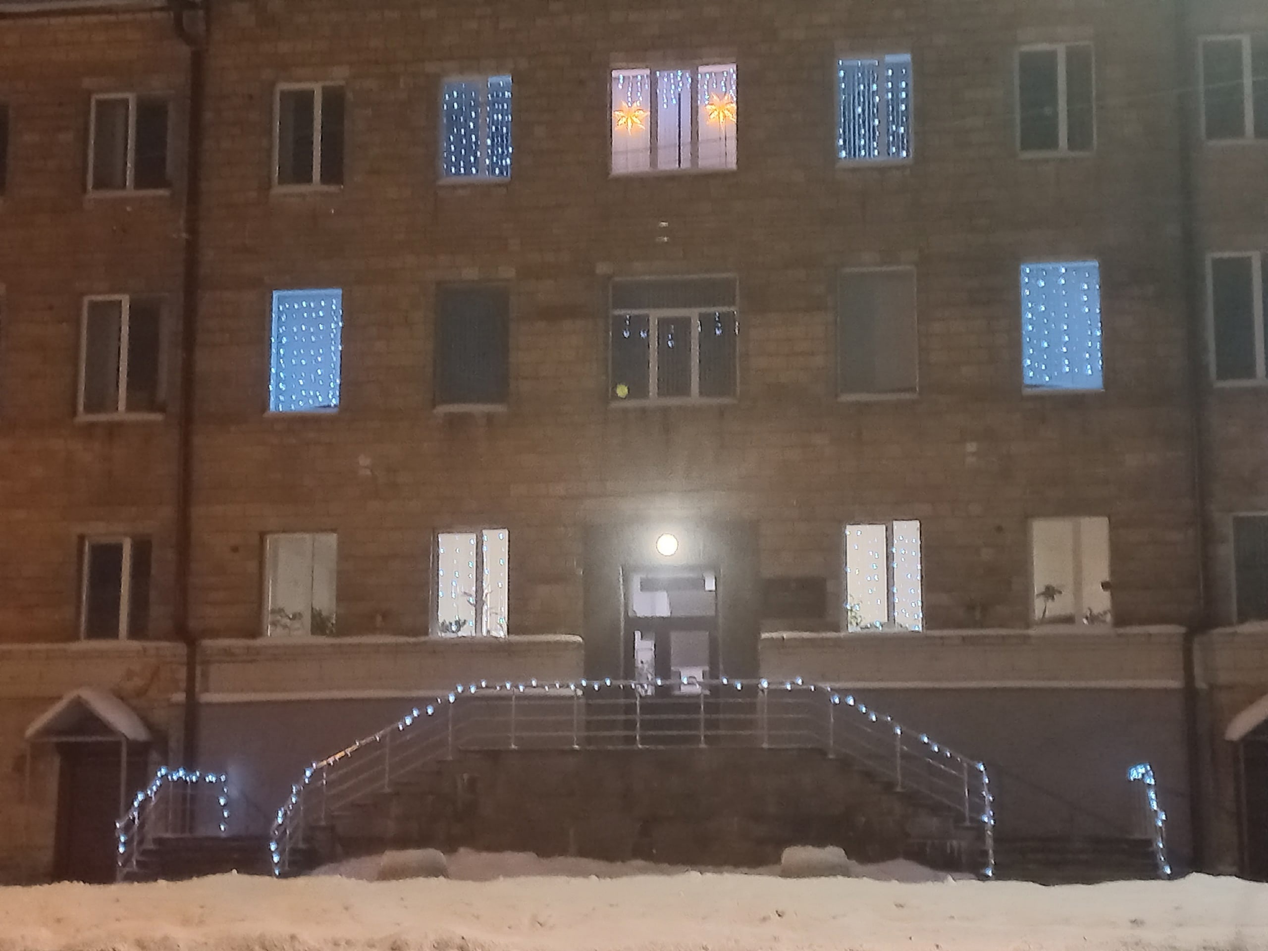 Посмотрите, как сияет новогодними огнями Министерство образования и спорта Республики Карелии. Глядя на эту жизнерадостную картину, может показаться, что все дети нашего северного региона тоже не обделены яркими праздничными огоньками. Да что там - обычным освещением улиц, по которым они ходят в школу в самое темное время года.