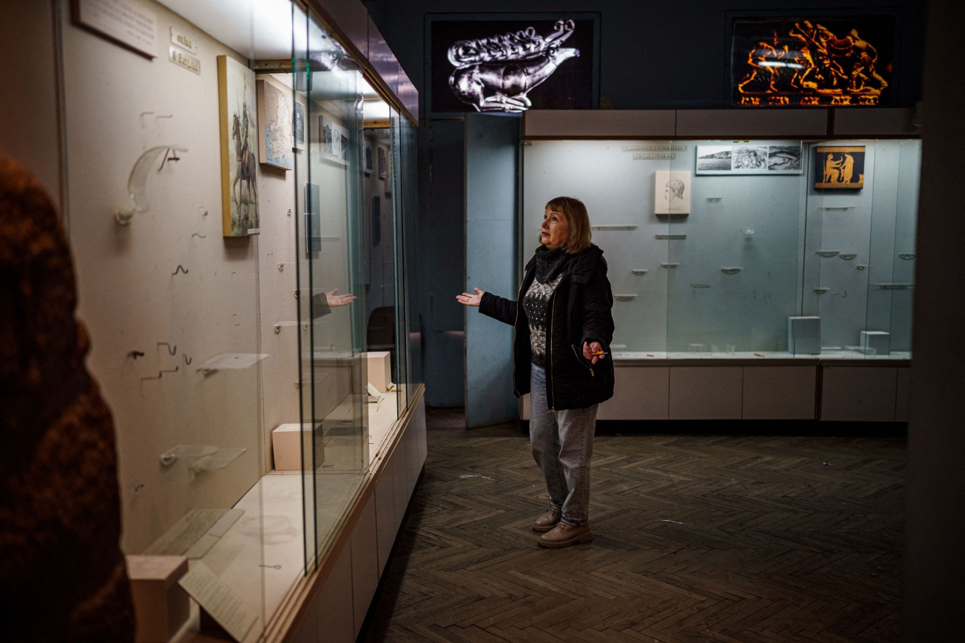 Dimitar Dilkoff / AFP / Scanpix / LETA Один из залов разграбленного россиянами Херсонского краеведческого музея. Директор Центрального музея Тавриды в Симферополе Андрей Мальгин в разговоре с RTVi подтвердил, что вывезенные из музея в Херсоне экспонаты хранятся в Крыму. Какие именно — он не уточнил. По данным украинских властей, российские военные и гражданские лица, действовавшие по их приказу, похитили тысячи ценных артефактов и произведений искусства из двух музеев, собора и национального архива в Херсоне, прежде чем отступить из города в ноябре после восьми месяцев оккупацииDimitar Dilkoff / AFP / Scanpix / LETA Ольга Гончарова, временный директор Херсонского краеведческого музея, показывает пустые стеклянные витрины в одном из залов учрежденияDimitar Dilkoff / AFP / Scanpix / LETA Пустая витрина, стилизованная под корабль, в которой были выставлены древние амфорыDimitar Dilkoff / AFP / Scanpix / LETA Пустые витрины в Херсонском краеведческом музее. Всего по оценке украинского министерства культуры, россияне похитили тысячи экспонатов. Ущерб, по предварительным подсчетам, уже составил сотни миллионов евро