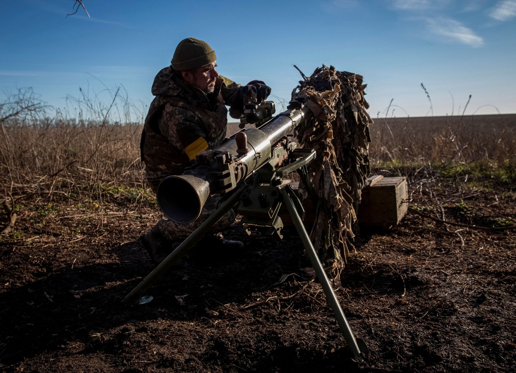 Libkos / AP / Scanpix / LETA Украинский военный с собакой недалеко от Бахмута — главной цели российского наступления на данный момент и районе, где идут самые ожесточенные боиOleksandr Ratushniak / Reuters / Scanpix / LETA Украинский военный в укрытии рядом с линией фронта в Донецкой областиOleksandr Ratushniak / Reuters / Scanpix / LETA Автоматы украинских военнослужащих в укрытии недалеко от линии фронтаLibkos / AP / Scanpix / LETA Украинские военные ведут огонь из миномета по российским позициям под БахмутомOleksandr Ratushniak / Reuters / Scanpix / LETA Украинский военнослужащий готовится стрелять из противотанкового гранатомета на линии фронта в Донецкой областиPierre Crom / Getty Images Подбитый российский танк в поле недалеко от Изюма в Харьковской области
