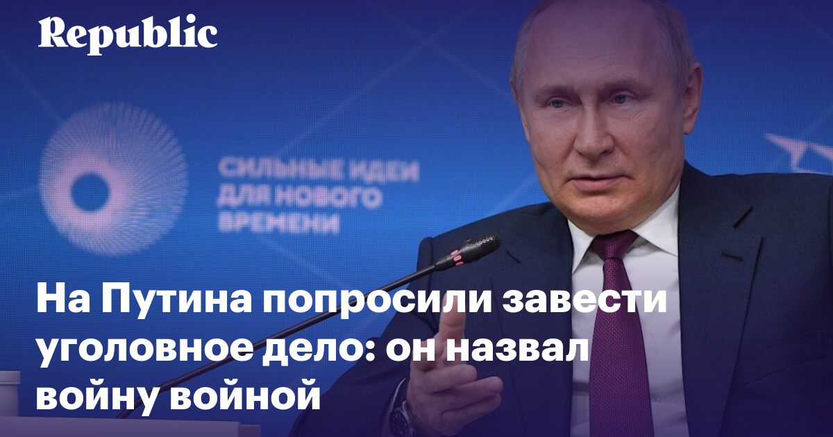 Муниципальный депутат петербургского МО «Смольнинское» Никита Юферев направил в Генпрокуратуру и МВД обращение с требованием возбудить уголовное дело против Владимира Путина по статье о распространении «фейков» о российской армии. Поводом стало высказывание президента на пресс-конференции 22 декабря для кремлевского пула журналистов, где он произнес слово «война», фактически запрещенное в России (суды регулярно штрафуют граждан за это по статье о «дискредитации» армии).