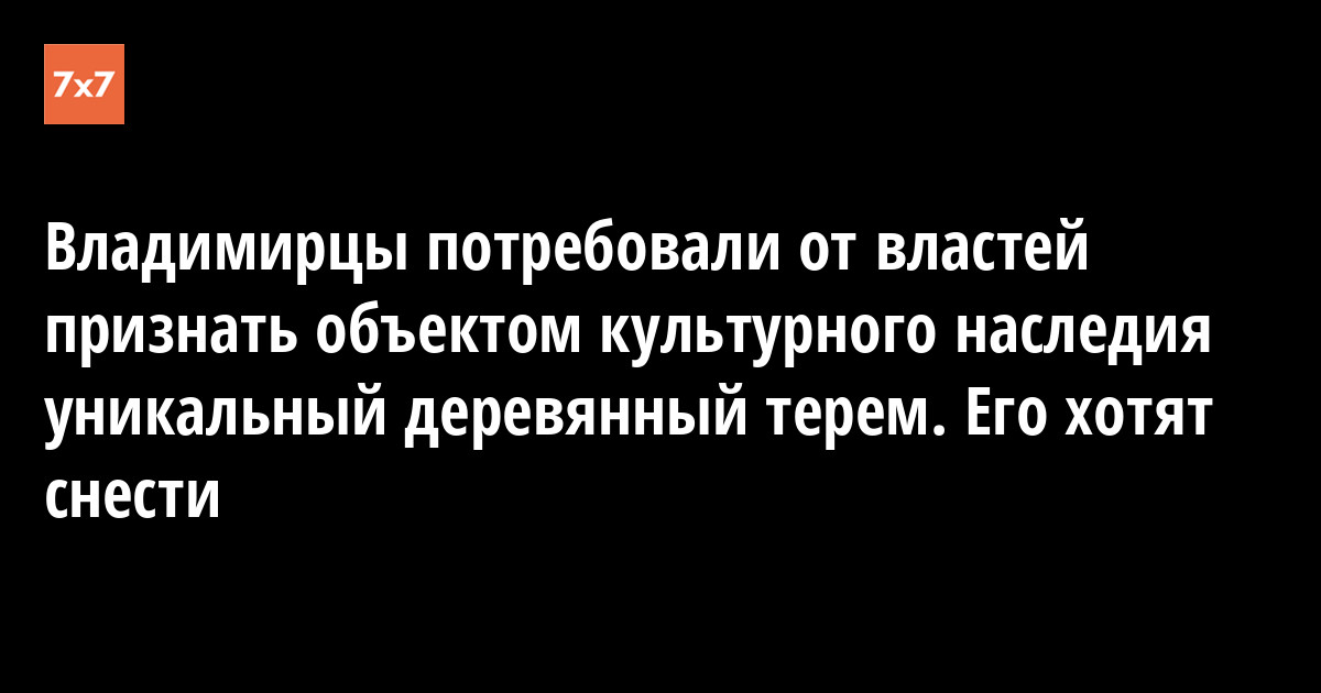 Владимирцы потребовали от властей признать объектом культурного наследия уникальный деревянный терем. Его хотят снести