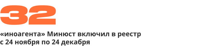 В декабре Госдума рассмотрела и приняла хотя бы в одном чтении 12 репрессивных законов. Среди них — норма, ужесточающая ответственность для «иностранных агентов». Всем «иноагентам» грозит уголовная ответственность при двух административных штрафах за год. Кроме того, на людей, не внесенных в реестры, но осуществляющих деятельность «иностранного агента», в соответствии с новым законом могут завести административное дело.