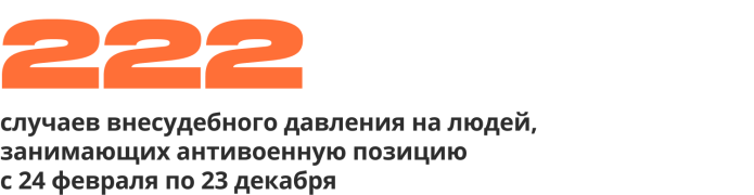 Десять месяцев прошло с начала полномасштабной войны. Все это время российские власти наращивают уровень преследований собственных граждан. Публикуем обзор репрессий в России с 24 ноября по 24 декабря 2022 года.