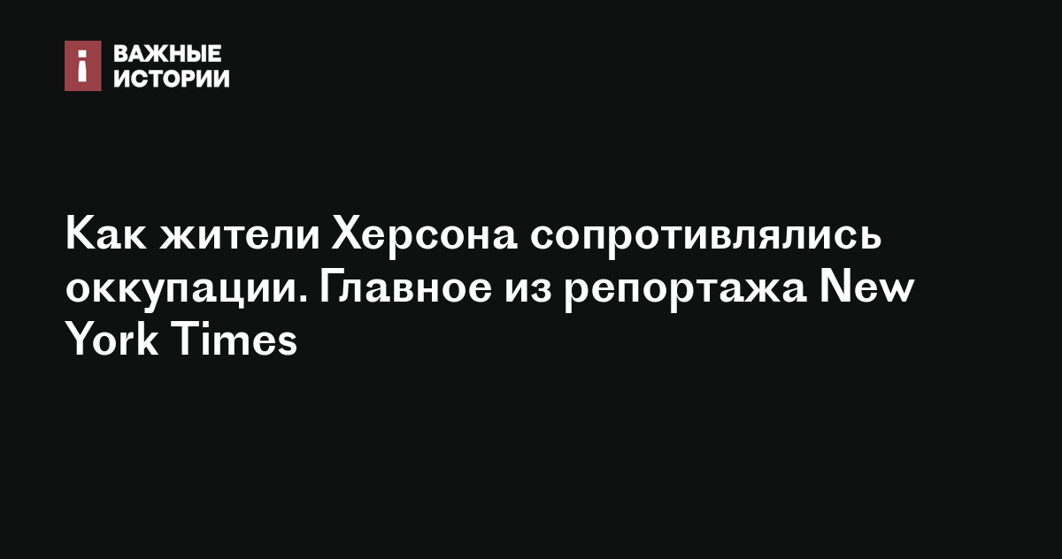 Издание New York Times опубликовало репортаж из Херсона о том, как местные жители сопротивлялись российской оккупации. Они передавали ВСУ информацию о передвижениях российских войск, перевозили оружие, предназначенное для партизан, а по ночам нападали на российские патрули.