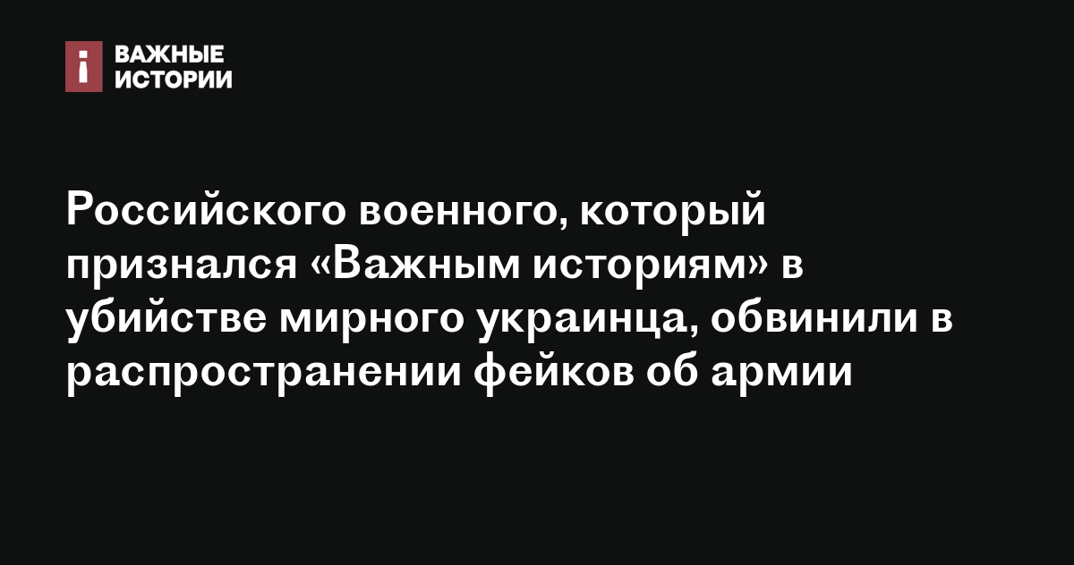 Российского военного, который признался «Важным историям» в убийстве мирного украинца, обвинили в распространении фейков об армии