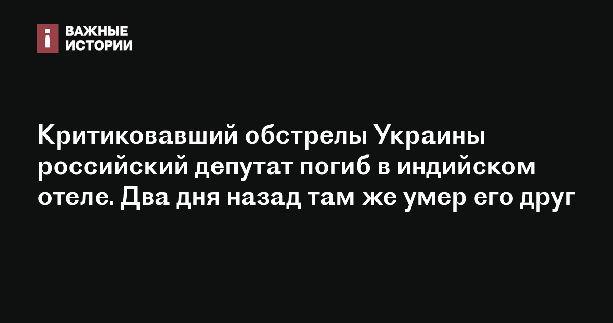 Критиковавший обстрелы Украины российский депутат погиб в индийском отеле. Два дня назад там же умер его друг