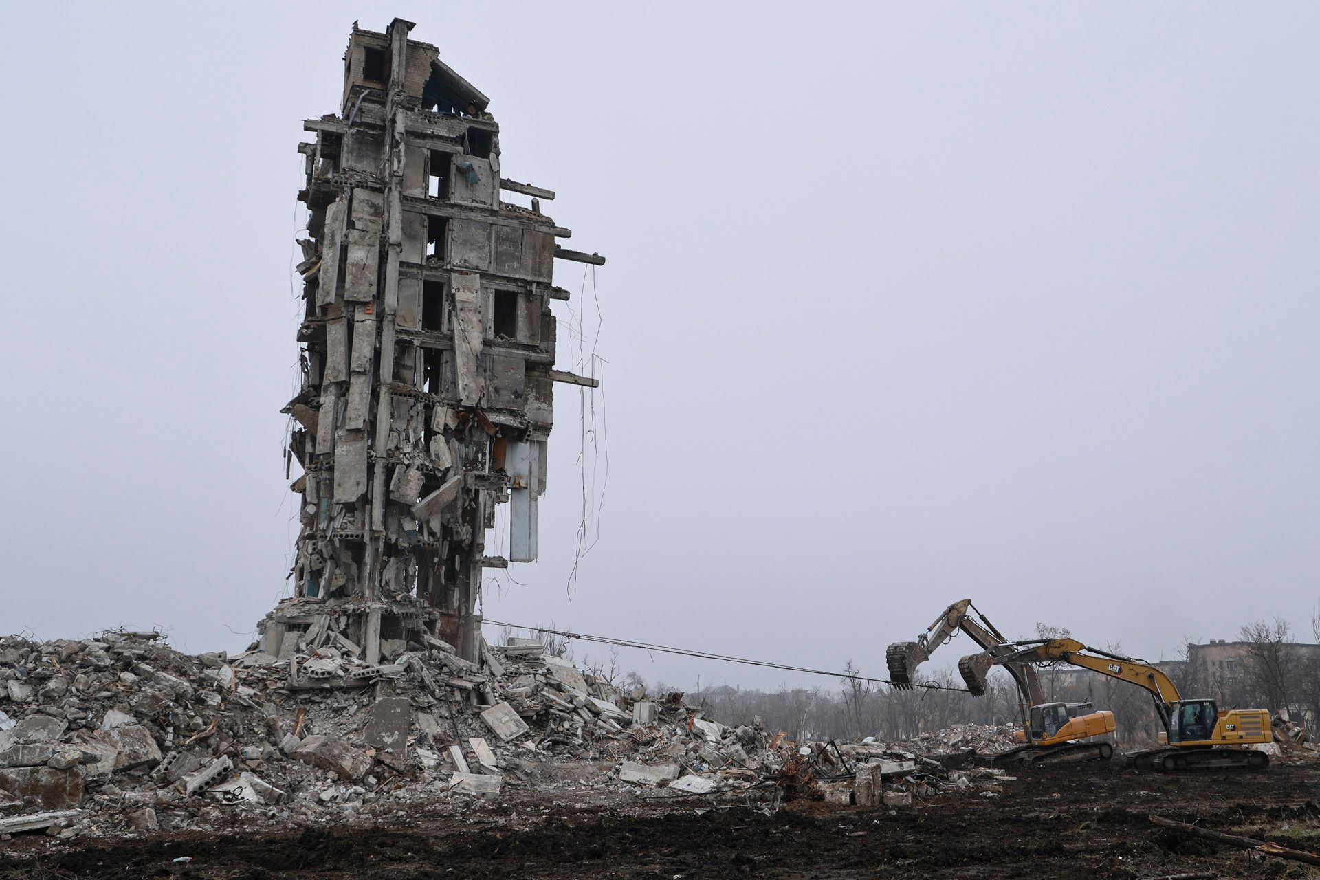 Валентин Спринчак / ТАСС Экскаваторы сносят остатки дома в оккупированном РФ Мариуполе, который в результате российских обстрелов оказался практически уничтожен. Кремль утверждает, что город в Донецкой области Украины пострадал во время боев. Оккупационные власти признали, что этот дом непригоден для ремонта и восстановления