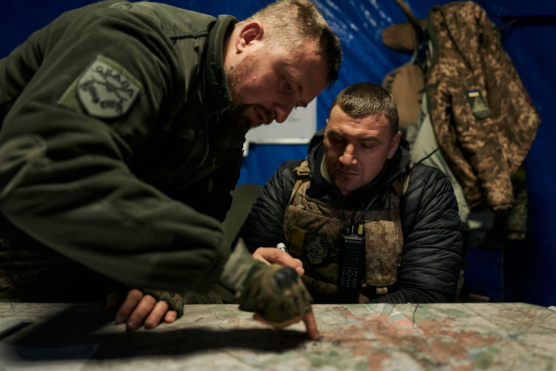 Libkos / AP / Scanpix / LETA Украинский военнослужащий в подземном командном центре в БахмутеLibkos / AP / Scanpix / LETA Украинский военнослужащий из командного центра в Бахмуте наблюдает за трансляцией, которая ведется беспилотникомLibkos / AP / Scanpix / LETA Украинские военнослужащие в командном центре в Бахмуте изучают карту района боевых действийEvgeniy Maloletka / AP / Scanpix / LETA Украинская самоходная артиллерийская установка ведет огонь по российским силам на линии фронта в Харьковской областиEvgeniy Maloletka / AP / Scanpix / LETA Украинские военнослужащие из 127-й бригады харьковской территориальной обороны устанавливают камеру на телескопическую вышку на советской «Волге», переделанной для наблюдения и корректировки огня на линии фронта под ХарьковомEvgeniy Maloletka / AP / Scanpix / LETA Командир украинской бригады по кличке «Дядя Рома» и его товарищ после проведения огня из самоходной артиллерийской установки по российским силам в Харьковской области