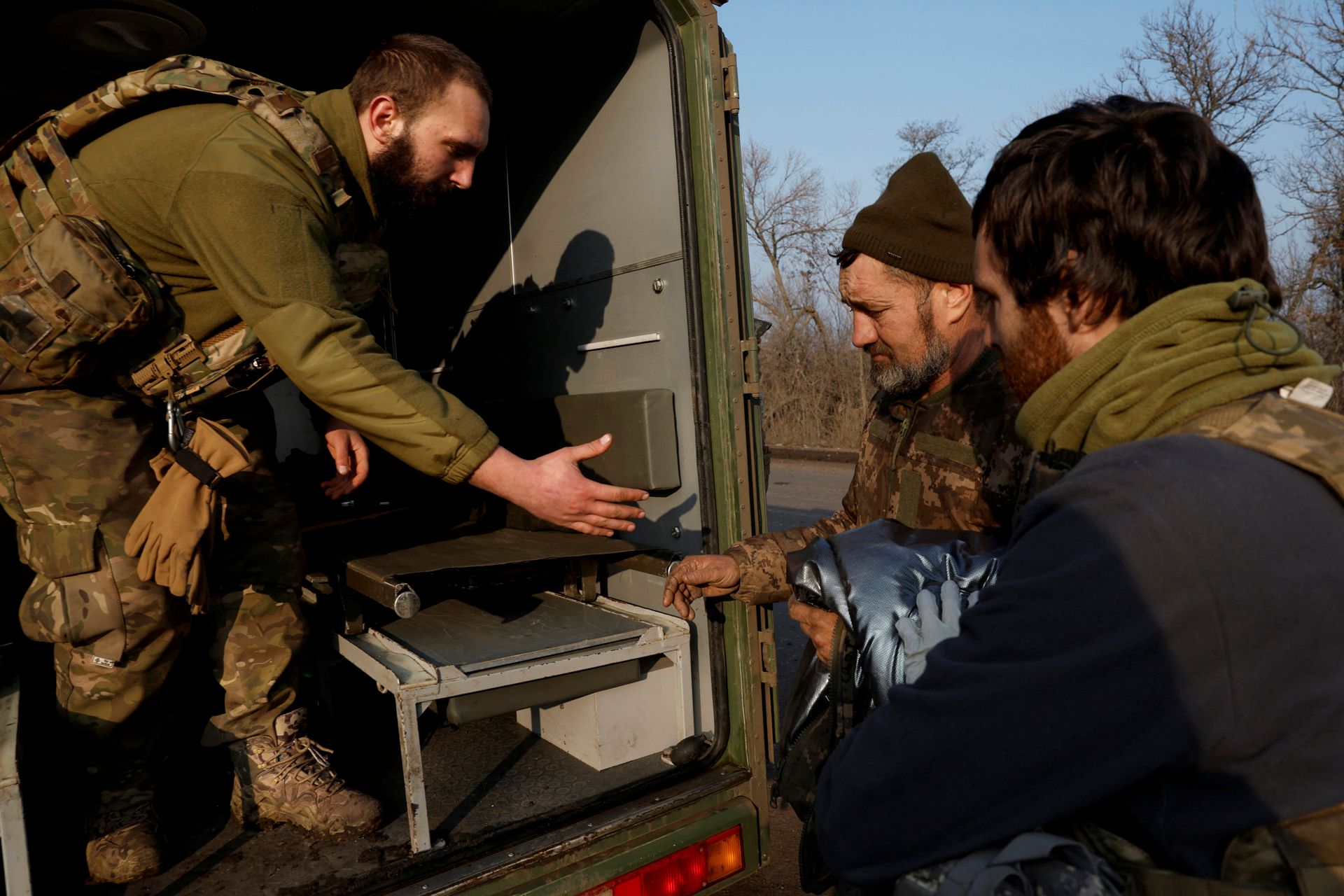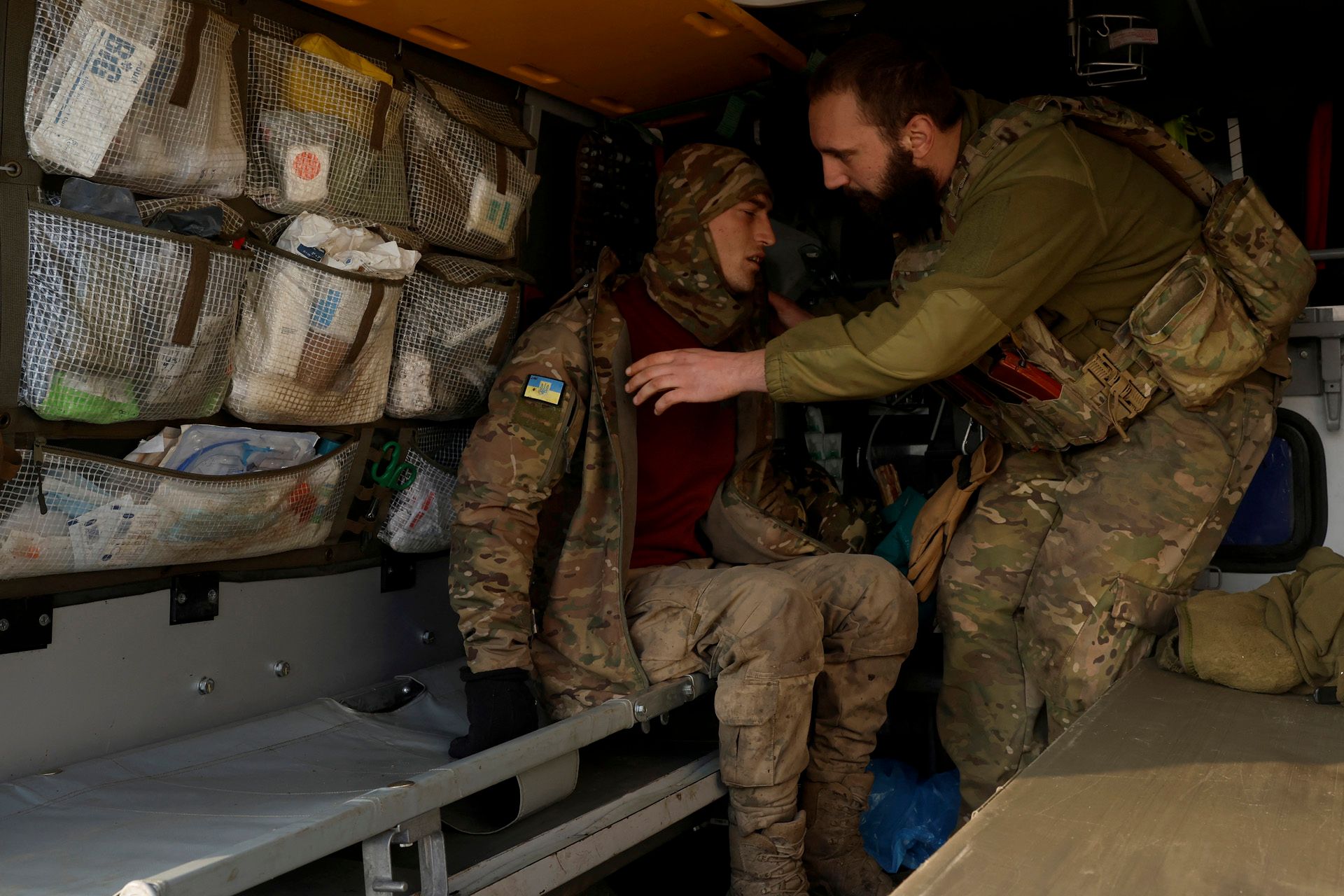 Clodagh Kilcoyne / Reuters / Scanpix / LETA Украинский военный на линии фронта в Бахмуте принимает пациента, чтобы отвезти его в больницуClodagh Kilcoyne / Reuters / Scanpix / LETA Украинского военного, который получил осколочные ранения в Бахмуте, собираются доставить в полевой госпитальClodagh Kilcoyne / Reuters / Scanpix / LETA Салон машины скорой помощи. Ей управляет 30-летний украинский военнослужащий-медик Алексей «Прометей»Clodagh Kilcoyne / Reuters / Scanpix / LETA Украинский военнослужащий-медик Алексей «Прометей» вышел на обочину дороги, чтобы смыть кровь пациента со своей формы