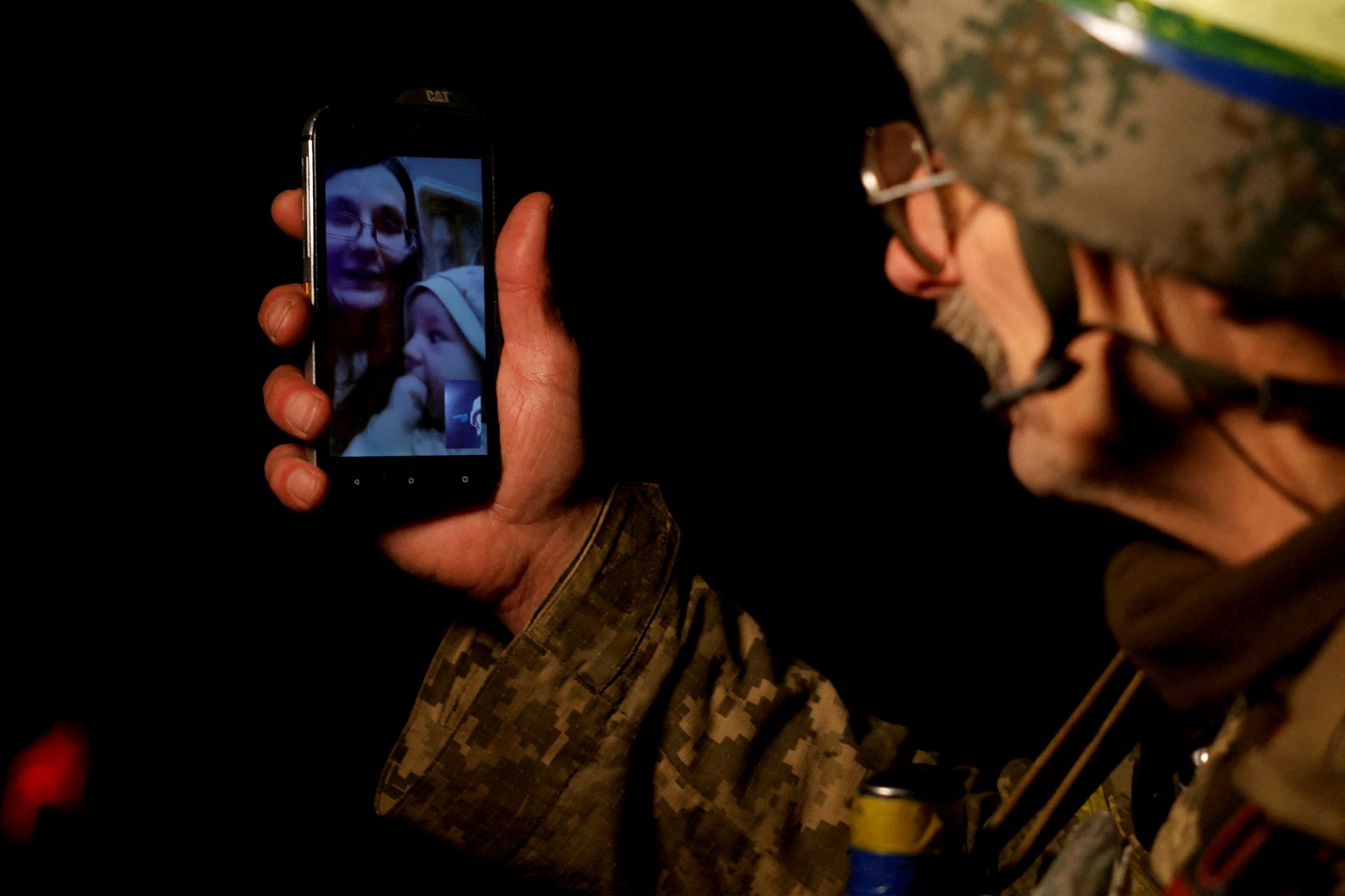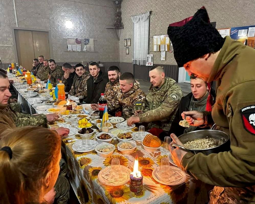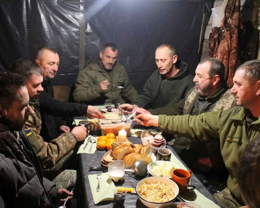 Clodagh Kilcoyne / Reuters / Scanpix / LETA 63-летний служащий территориальной обороны Украины Леонид Онищенко разговаривает из Константиновки (Донецкая область) по видеосвязи с женой и ребенком во время католического Рождества. Часть Донецкой области оккупирована Россией, на территории Донбасса продолжаются боиПресс-служба ВСУ / Reuters / Scanpix / LETA Украинские военные во время праздничного рождественского ужина. Где именно они находятся, неизвестно: ВСУ при публикации таких фото не раскрывает местонахождение солдатПресс-служба ВСУ / Reuters / Scanpix / LETA Праздничный стол украинских военнослужащих на фронте. Все больше жителей страны решают праздновать Рождество по Григорианскому календарю. На передовой проводят праздничные службы и ставят елкиПресс-служба ВСУ / Reuters / Scanpix / LETA Рождество на фронте. В праздничном обращении Владимир Зеленский отметил, что украинцы встречают это Рождество все вместе вне зависимости от того, где находятся. «Мы будем отмечать свои праздники, как обычно. Мы будем улыбаться и радоваться. Как обычно. Отличие одно: мы не будем ждать чуда, ведь мы творим его сами», — сказал украинский президент