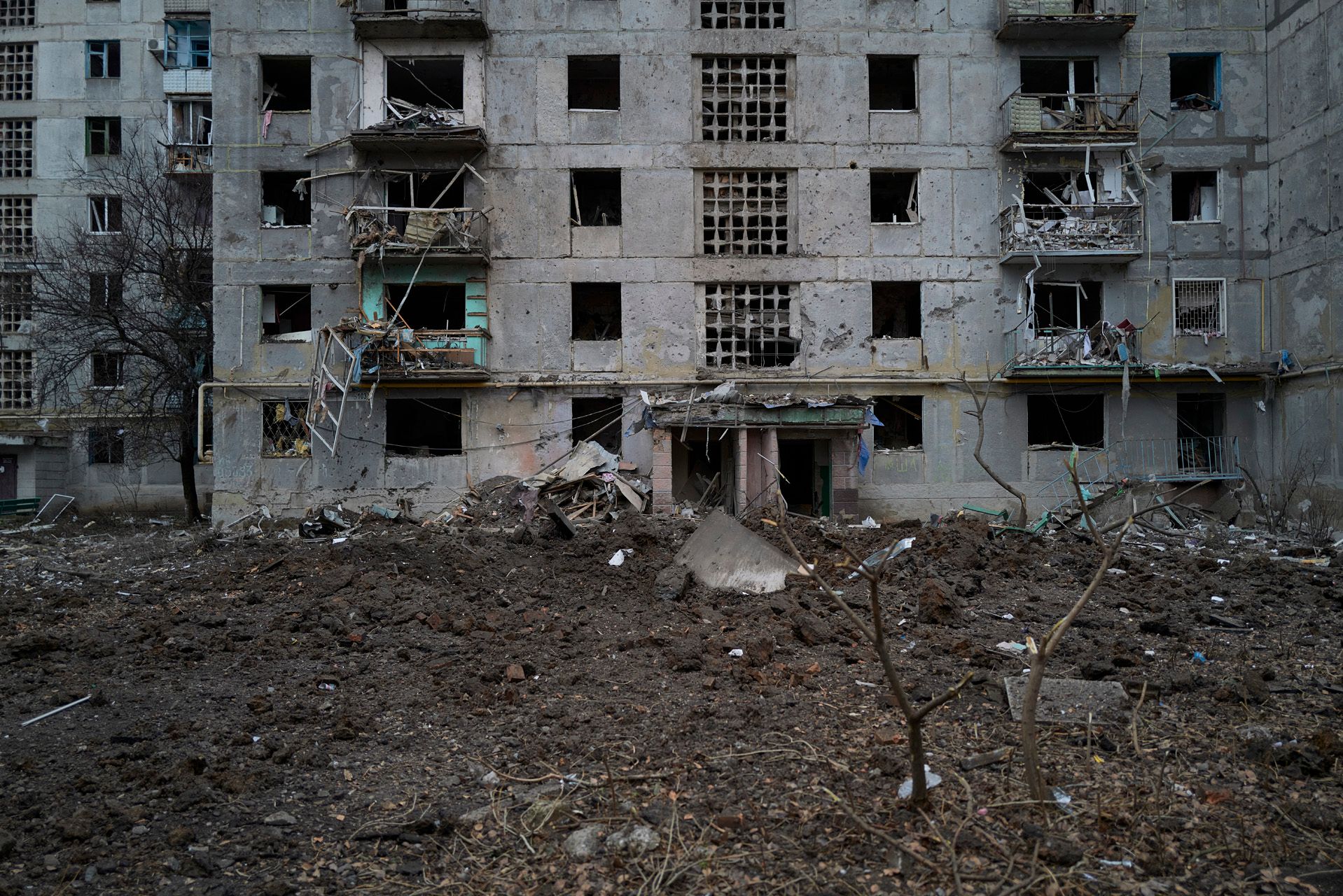 Clodagh Kilcoyne / Reuters / Scanpix / LETA Дым после ракетных ударов в небе над Бахмутом. Город на севере Донецкой области, ставший важным транспортным узлом, остается местом ожесточенных боев. По данным американского Института изучения войны (ISW), в последние дни темп наступления российских войск в районе Бахмута замедлился; украинские войска вытеснили россиян с восточной окраины городаPierre Crom / Getty Images Сильно поврежденный обстрелами жилой дом в Бахмуте. В городе, где до войны жило более 70 тысяч человек, теперь остались в основном пенсионеры. Мирные жители выживают без тепла и электричества, а также при нехватке еды и водыClodagh Kilcoyne / Reuters / Scanpix / LETA 61-летний Владимир и 51-летняя Наталья идут мимо промышленного здания, которое подверглось ракетному удару, Россия продолжает обстреливать города вблизи линии фронта