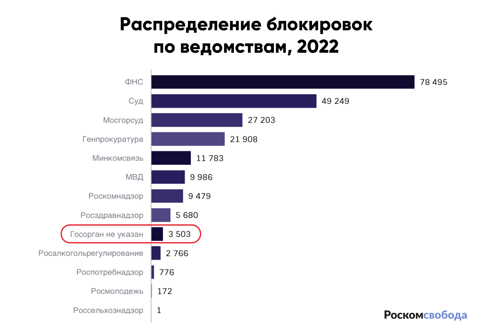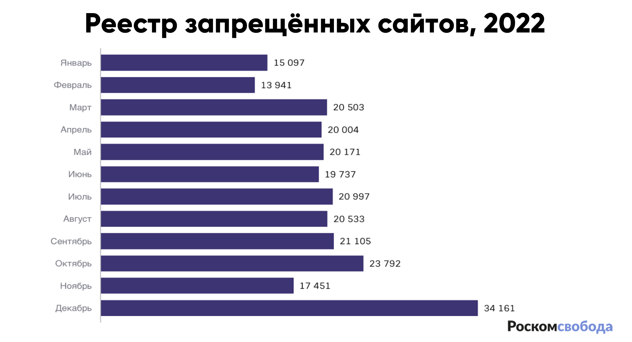 По состоянию на 27 декабря 2022 года в реестр запрещенных сайтов в 2022 году было внесено 247 492 ссылки на сайты или конкретные страницы в интернете. Самыми опасными для распространения информации в 2022 году оказались сайты независимых медиа, правозащитных организаций и проектов, рассказывающих о событиях в Украине. Из соображений военной цензуры по требованию Генпрокуратуры в реестр было внесено более 9 тысяч сайтов (отдельно об этом здесь). В ноябре 2022 года мы заметили, что в реестре стали появляться записи без указания органа, потребовавшего внести тот или иной сайт под блокировку. При этом мотивы ограничения доступа к таким сайтам остаются теми же, что есть у Генпрокуратуры — на них власти обнаружили информацию, которая может якобы дискредитировать или содержать фейки о действиях российской армии. После 24 февраля под запрет в России попали такие популярные медиа, как «Медуза», «Медиазона», «Радио Свобода», Republic, DW, BBC, «7x7. Горизонтальная Россия», «Тайга.Инфо», The Village, DOXA и др.