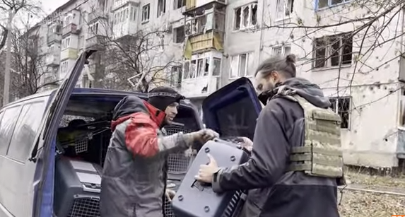 Волонтеры из Киева вывозят из Бахмута животных и их хозяев