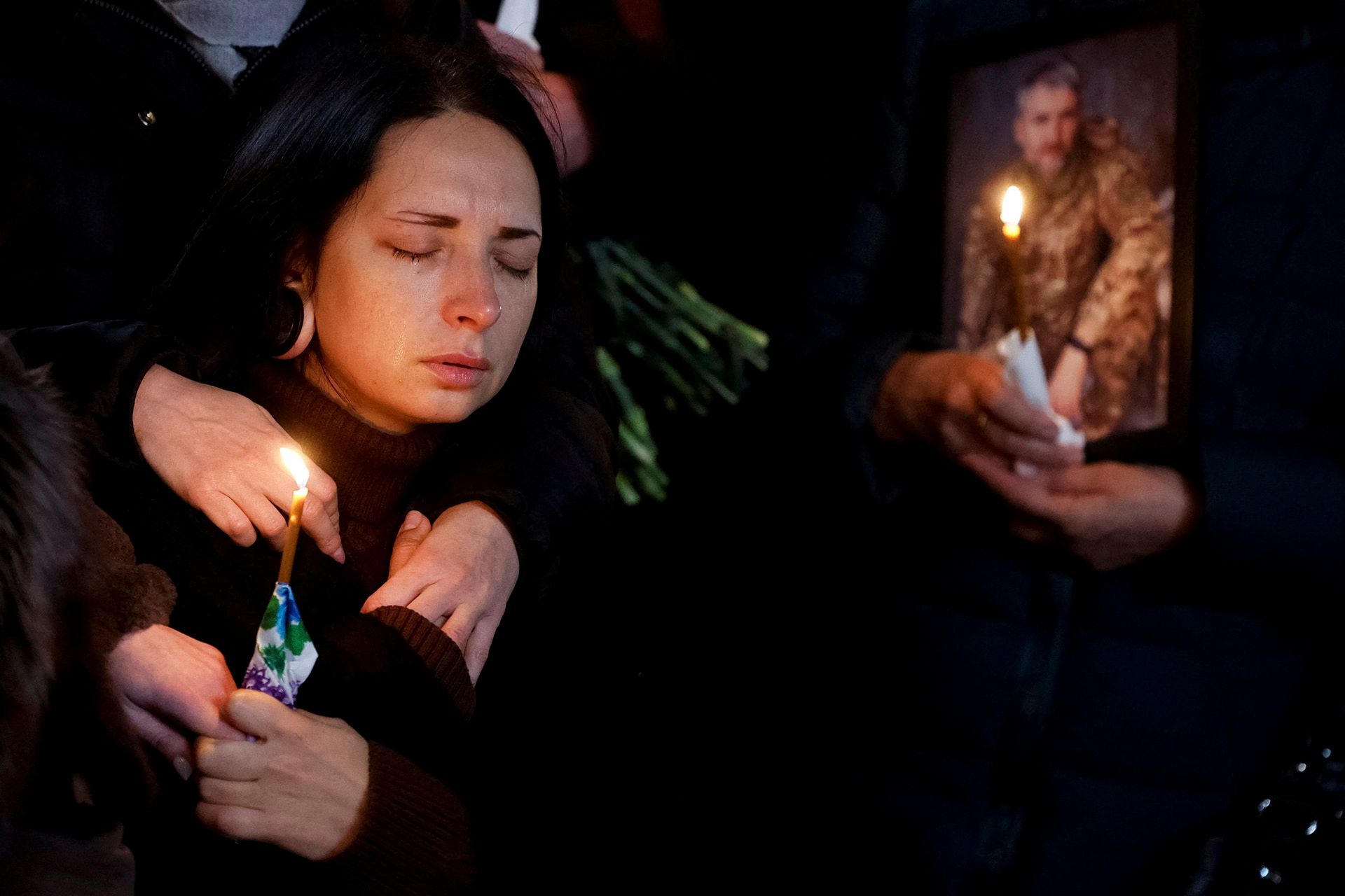 Valentyn Ogirenko / Reuters / Scanpix / LETA Жена Владимира Ежова Ольга на похоронах мужа. Ежов был одним из разработчиков украинской видеоигры S.T.A.L.K.E.R. Он погиб 22 декабря в боях за Бахмут в Донецкой области
