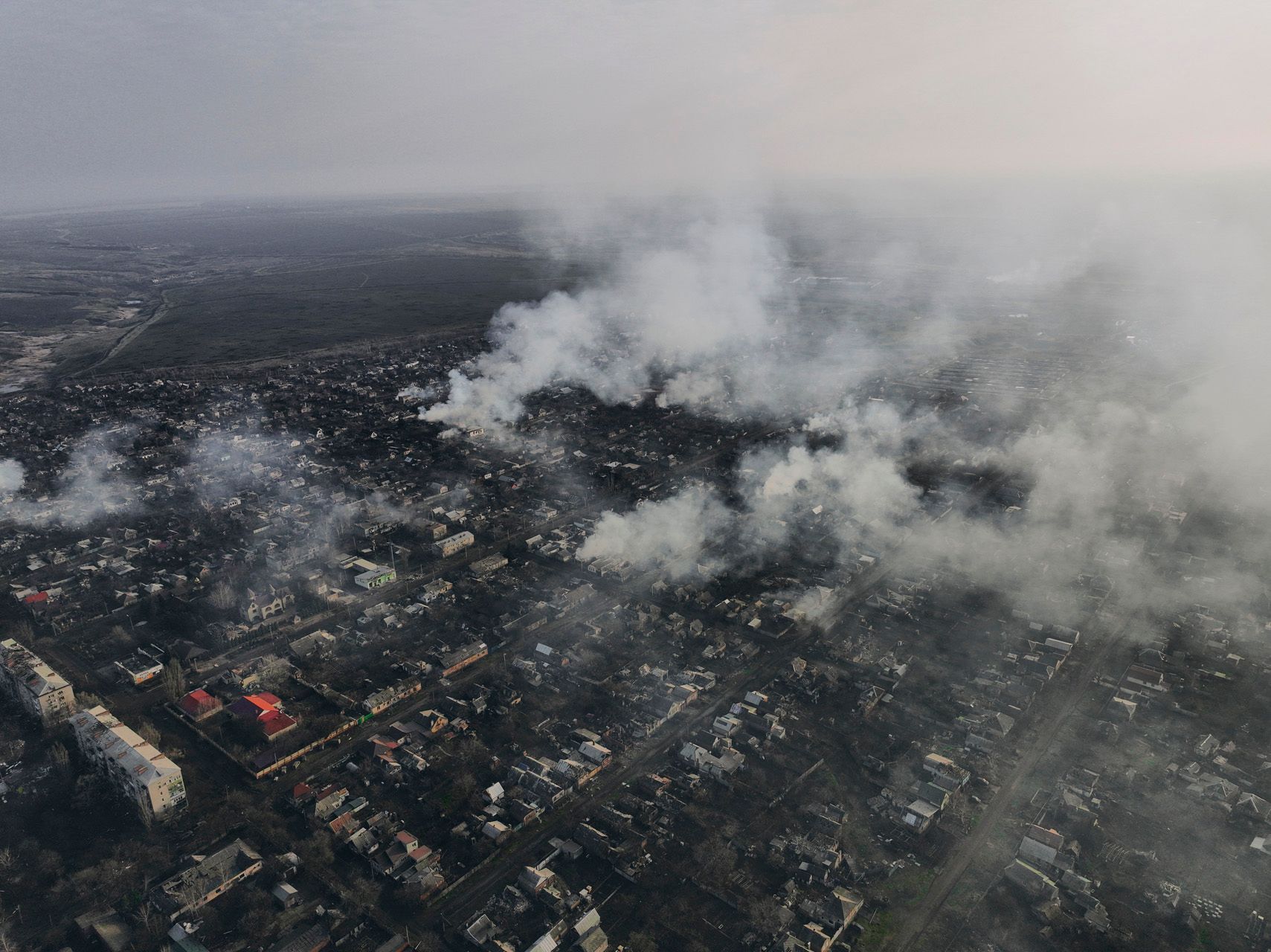 Кадр дня. Пожары в Бахмуте после обстрелов