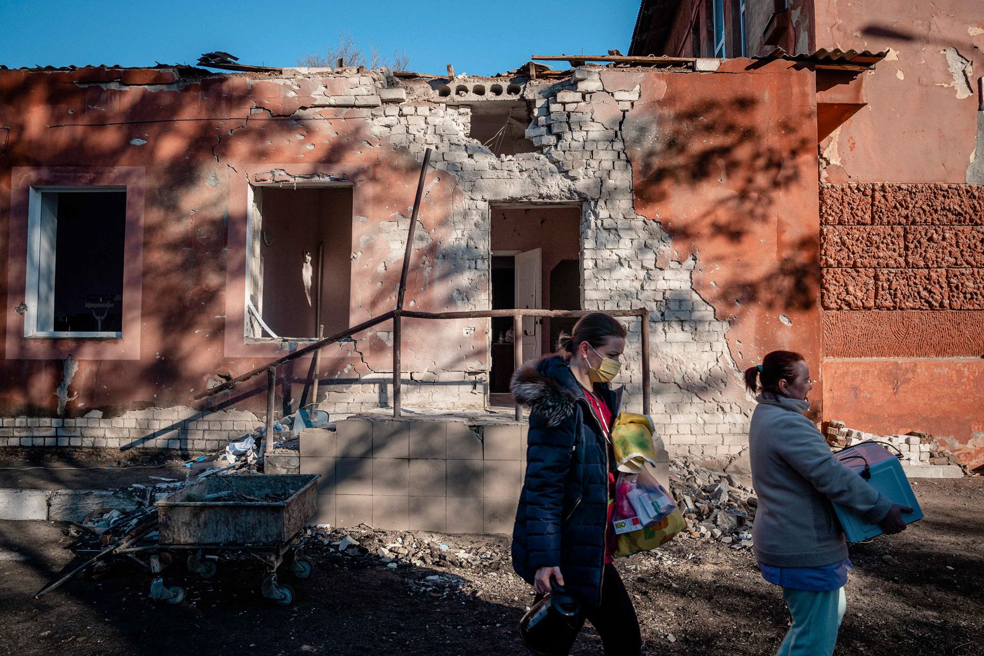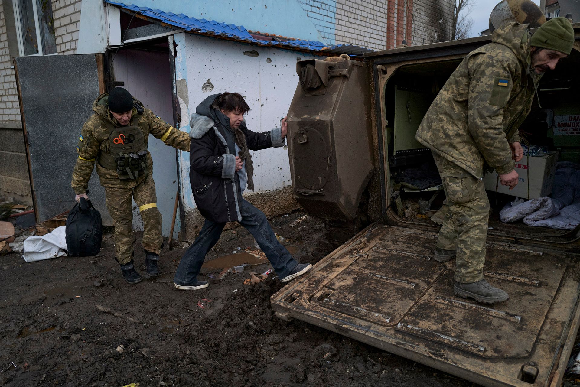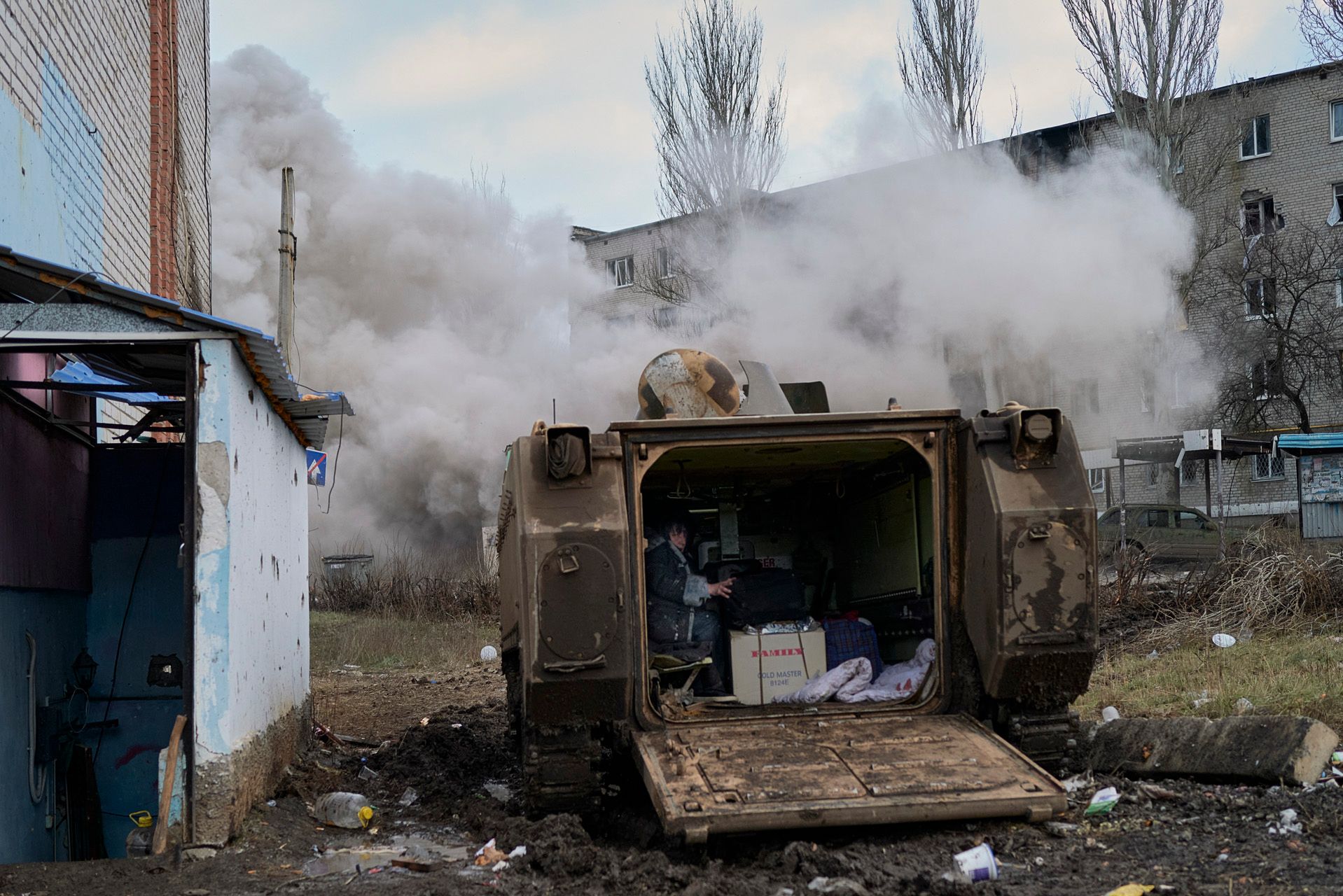Украинские разведчики и беженцы под огнем в Бахмуте