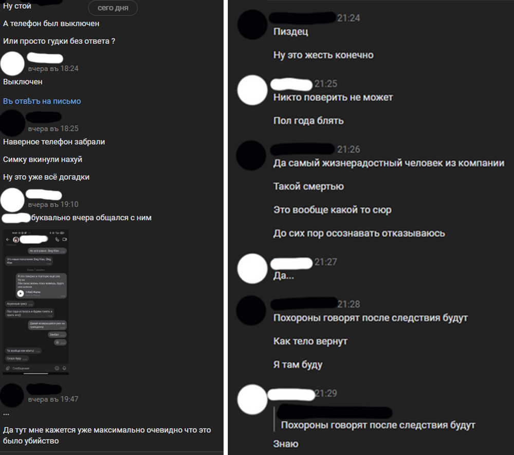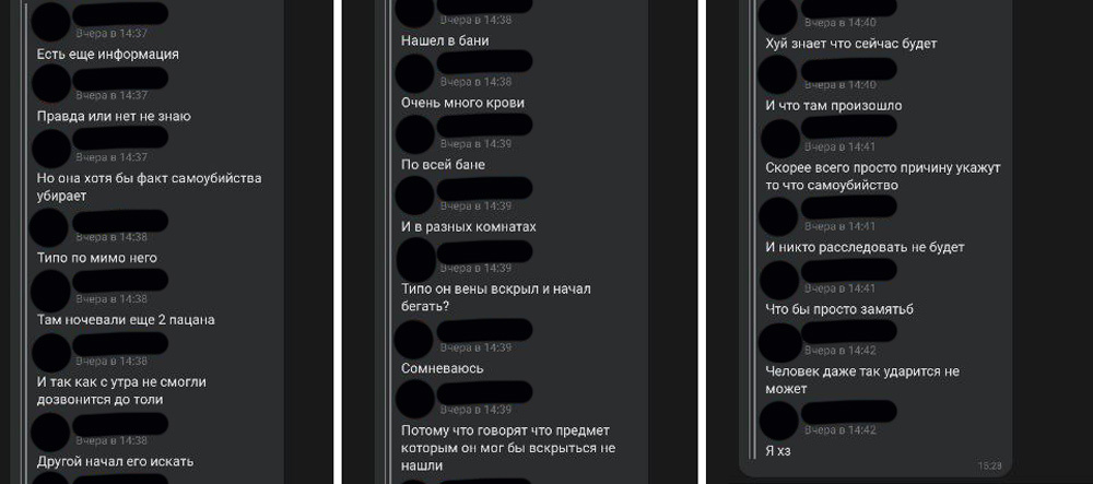 Это было последнее сообщение Черкашина в переписке, оно отправлено в 15:39 по Москве — за 15 часов до обнаружения его тела. Что делал 21-летний Анатолий позже, неизвестно.