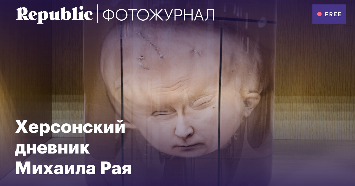 Фотограф Михаил Рай в течение девяти месяцев с февраля по ноябрь 2022 года находился под российской оккупацией в своем родном городе Херсоне. Подводя итоги уходящего года, Фотожурнал публикует совершенно невероятный «Херсонский дневник» Михаила, включающий в себя цифровые коллажи автора и записи из дневника, сделанные им во время оккупации. Фотографии, созданные больше интуитивно, чем сознательно, представляют собой многослойные коллажи, которые хочется рассматривать в деталях и которые наполнены глубоким, подчас философским, смыслом. В текстах, честных и при этом ироничных, Михаил рассказывает об особенностях жизни горожан и военных, размышляет о «Сказочнике» (Владимире Путине) и «Стране сказок» (России), абсурде и ужасе, страхе и ответственности, «русоненависти» и необходимости оставаться людьми даже в самых страшных обстоятельствах.