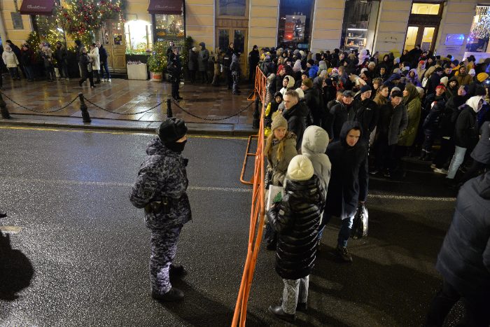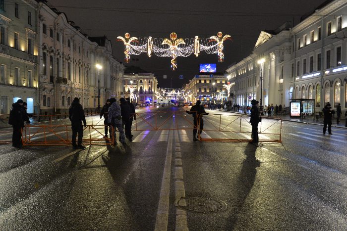Около девяти вечера 31 декабря полиция внезапно перекрыла часть Невского проспекта от Казанской улицы до Дворцовой. Толпе гуляющих полицейские объявили, что идет «обследование территории», и предложили идти на Дворцовую площадь в обход.