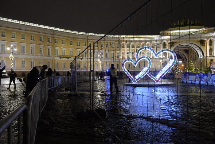 К ночи проход по Невскому открыли, но пройти на Дворцовую площадь можно было только через рамки и после тщательного ручного досмотра. Нельзя было пронести жидкость и петарды, только бенгальские огни.