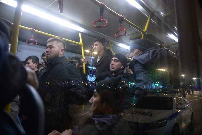 В итоге полиция заполнила задержанными автобус, рассчитанный примерно на 50 человек.