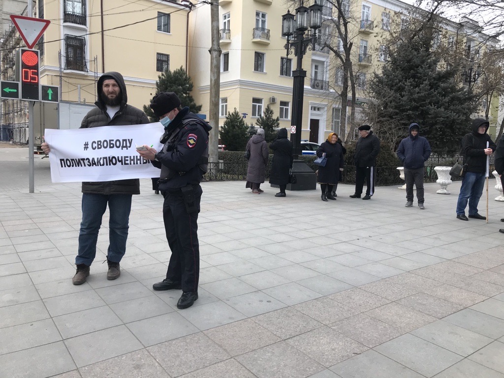 Каждый понедельник в Махачкале проходит серия одиночных пикетов с требованием прекратить уголовное преследование журналиста Абдулмумина Гаджиева и других политических заключенных. Периодически силовики пытаются задерживать их участников.
