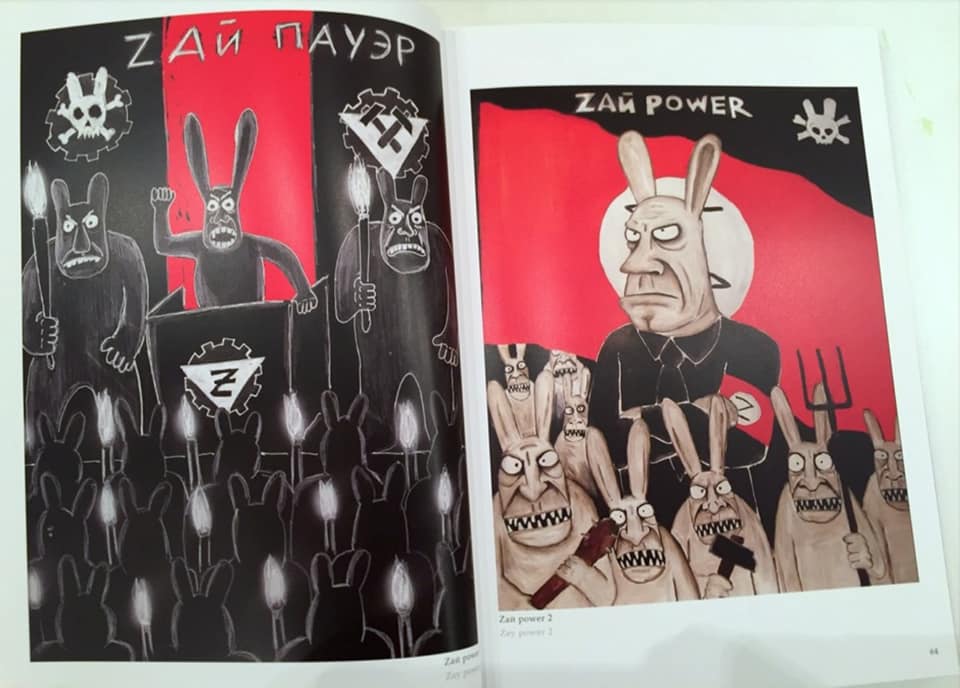 По интернету распространяется репродукция картины в стиле Васи Ложкина «Zай пауэр». На картине изображены фашиствующие зайцы с заячьим фюрером и буквой Z вместо свастики. Увидев картину, я предположил: «Может быть, фейк? Может быть, просто картина 2022 года в стиле Васи Ложкина? Ведь невозможно настолько точно предсказать будущее». Но нет, оказалось, что это — не фейк. Я просмотрел размещенные в интернете репродукции из альбома Васи Ложкина «Жизнь — веселый карнавал». Все репродукции были взяты из книги, изданной в 2014 году. Получается, что это действительно пророчество.