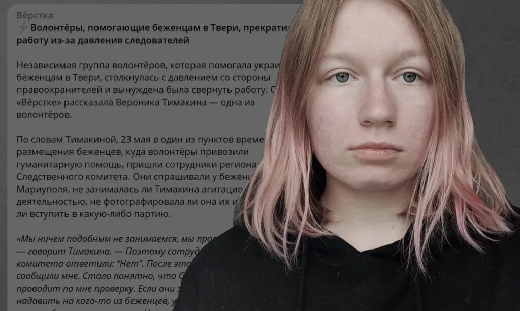 В мае «Вёрстка» публиковала материал о том, как независимая группа волонтёров в Твери столкнулась с давлением со стороны правоохранительных органов. К одной из волонтёрок — 19-летней Веронике — пришли с обыском, ей сказали, что она проходит свидетельницей по делу о «распространении фейков». Украинцев, которым помогала Вероника, стали расспрашивать о ней. Из-за угрозы преследования Вероника улетела в Армению. Она рассказывает, как изменилась её жизнь.