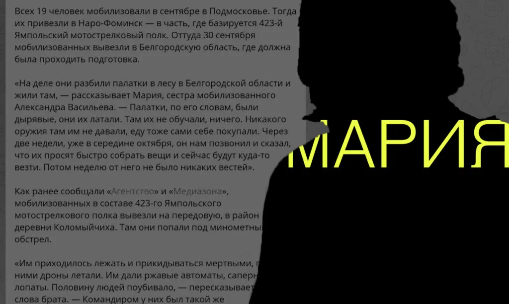 В ноябре «Вёрстка» рассказала о группе мобилизованных, которых насильно удерживали в подвале за то, что они отказались идти на передовую без оружия и обмундирования. О судьбе мобилизованных рассказывала сестра одного из них — Мария. Мы спросили у неё, что случилось с её братом дальше и удалось ли его вызволить.