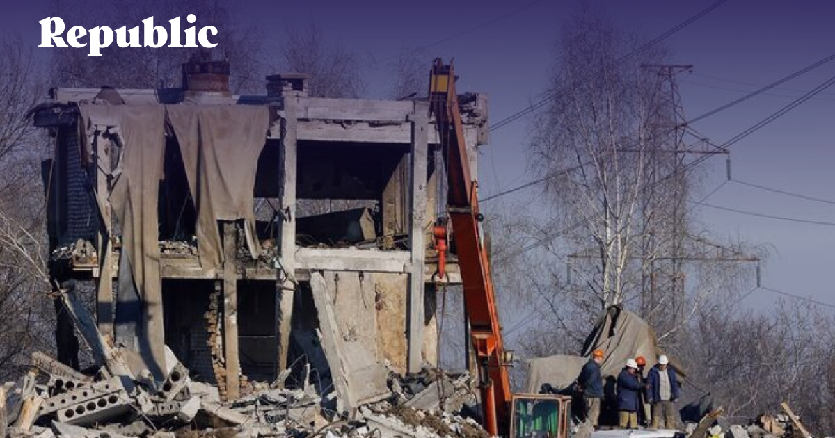 Разбор завалов на месте разрушенного здания ПТУ в украинской Макеевке