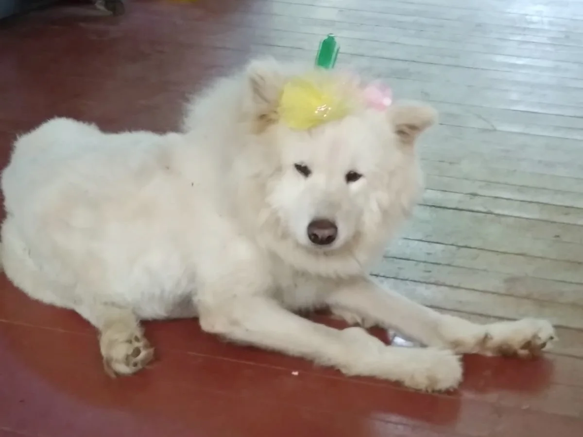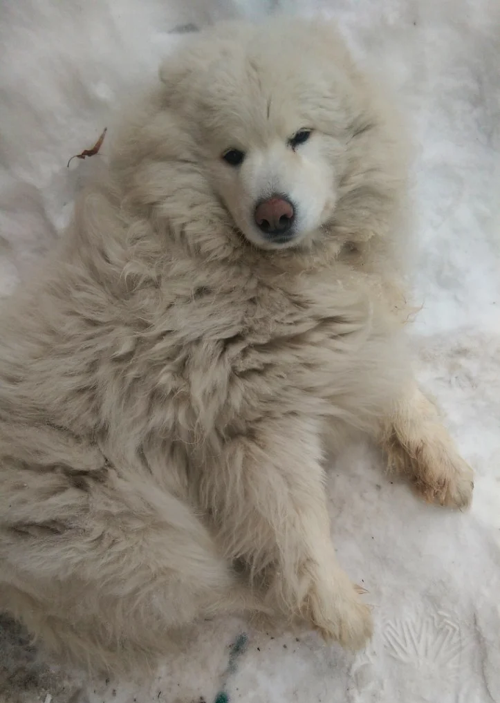 Словом, самой подходящей кандидатурой на ответственную должность Снегурочки оказалась наша лайка-самоед Шамба — полное родовое имя этой не дворняжки, а дворянки Белый Волк Шамбала Mist Dream.