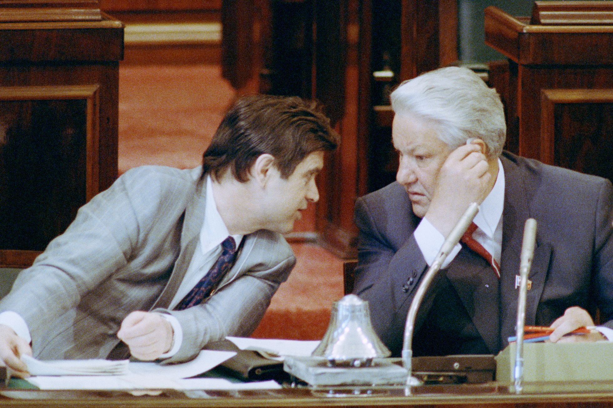 The cracks in Khasbulatov’s support for Yeltsin first started showing in late 1991, when the Russian president started forming his first full-fledged government (the USSR was in its final days). Yeltsin assigned the task to Gennady Burbulis — Khasbulatov’s old foe — who assembled a team led by young economist Yegor Gaidar. According to journalist Oleg Poltsov, this was a major blow to Khasbulatov, who, until that point, had considered himself the president’s chief economist and who had likely been eyeing the prime ministership for himself. Once again, Yeltsin passed him over, just as he had done with the vice presidency.