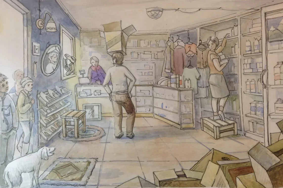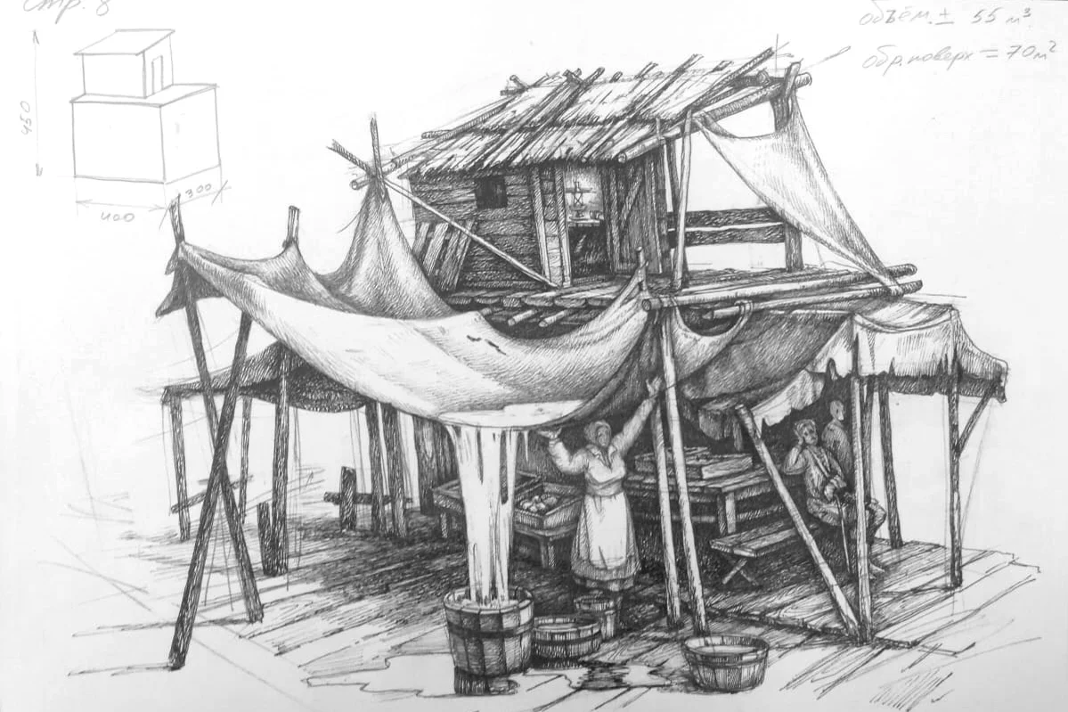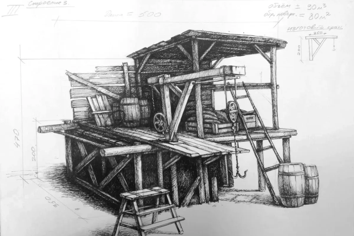 Макет расписал красками и начал делать детальные эскизы каждого сооружения, чертежи и схемы строительства. Когда рынок был готов, привезли реквизит (животных, разную утварь) — и все зажило и заиграло разными красками.
