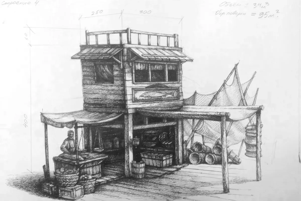 Я сделал макет рынка. Месяц сидел в офисе компании, клеил его из подручных материалов, реек. Искал формы, ритм, высоты мостков, определял количество обстановочного реквизита.