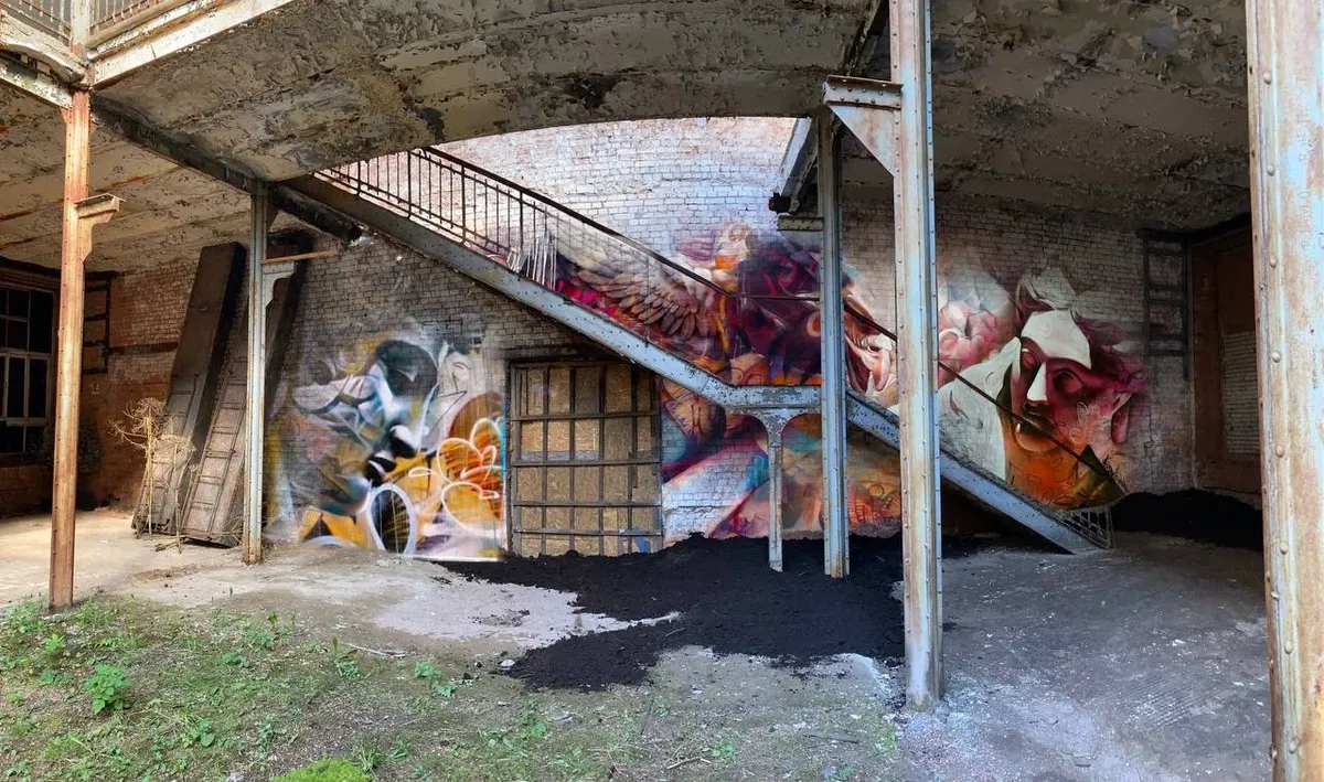 Светозаров учил нас уделять особое внимание деталям. Мы нашли старые вагонетки, огромное колесо, завезли старые ванны с помойки, заполнили их землей с растениями, расписали стены граффити с греческими скульптурами, отлили «расколовшийся памятник» — огромная голова и рука, на которой потом спят герои.