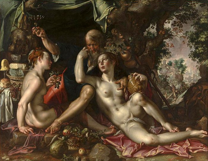 Это понятно, что художники того времени отражали на картинах те знания, которыми обладали. Доподлинно не зная, как выглядит Святая земля, они переносили на полотно известный им мир. Так, на картине «Лот с дочерьми» опять появляется яблоня, хотя во времена Христа яблони в Израиле еще не было.